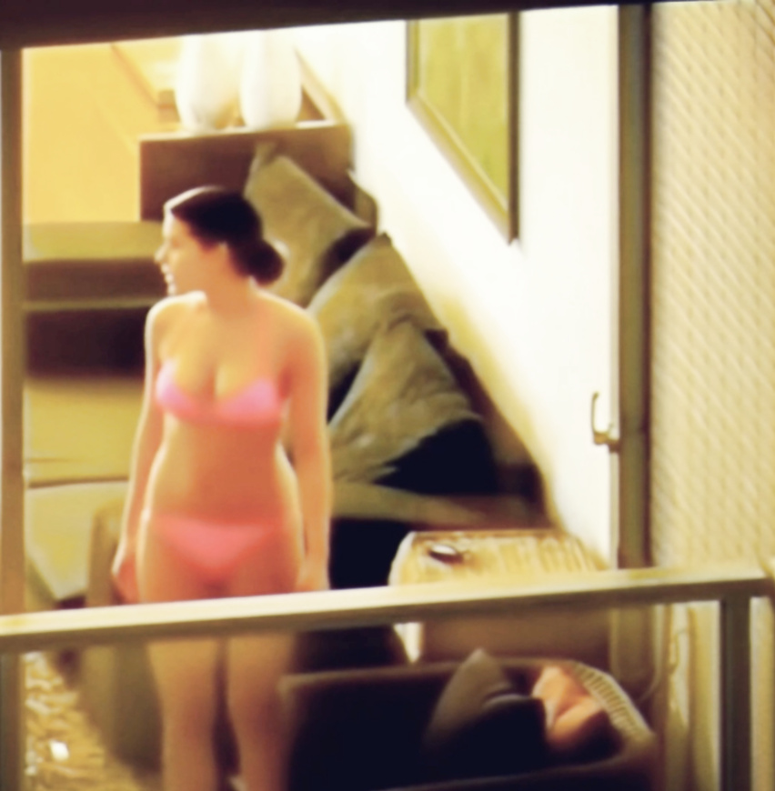 最近对面高级公寓大楼搬进了一对年轻外国情侣, 看样子可能是拉丁血统的, 两人都很开放时常不拉窗帘, 女方会穿 bikini 或睡衣在家走. 前晚拍到了她在家穿着粉红色 bikini 的影片. 晚上睡前想说再看一眼, 发现他们窗帘未关灯也还亮着, 结果等到快午夜居然给我看到那女方一丝不挂完全裸体的出来关窗帘. 因为太突然来不急拍视频只拍到一张照片, 可惜!